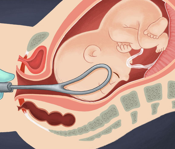 Your doctor will gently apply two sterile instruments (forceps blades) into your vagina around the baby’s head. The instruments look like curved spoon-shaped tongs, and are specially designed to fit comfortably around the baby’s head. As you push during each uterine contraction, your doctor will deliver the baby’s head using the forceps blade